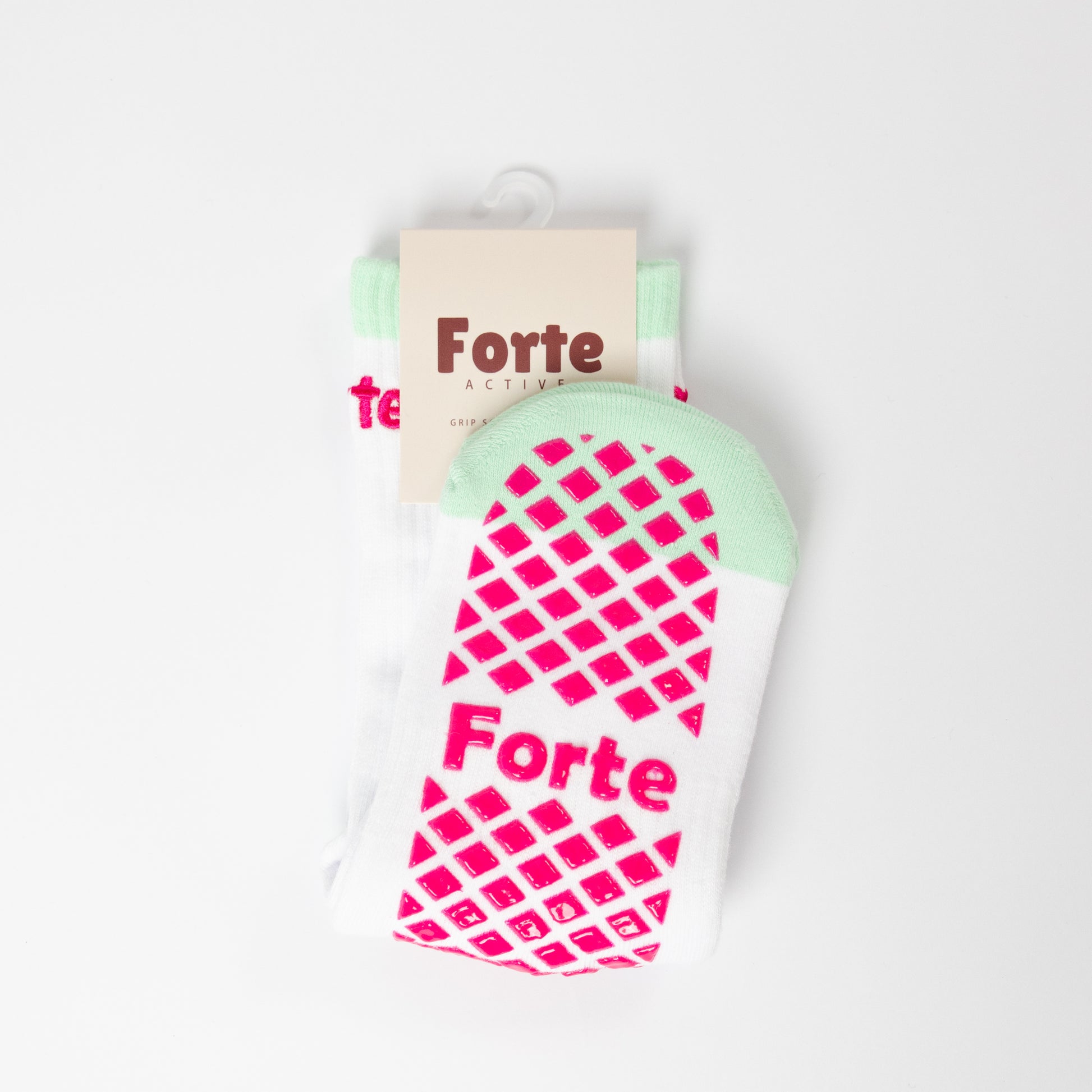 The ribbed crew silhouette offers a structured, refined fit, while the geometric grip pattern grounds every movement with confidence. The embroidered Forte logo on the ankle provides a touch of luxe. Crafted from a breathable cotton blend with subtle arch support, it delivers comfort, control, and a cool, contemporary finish.