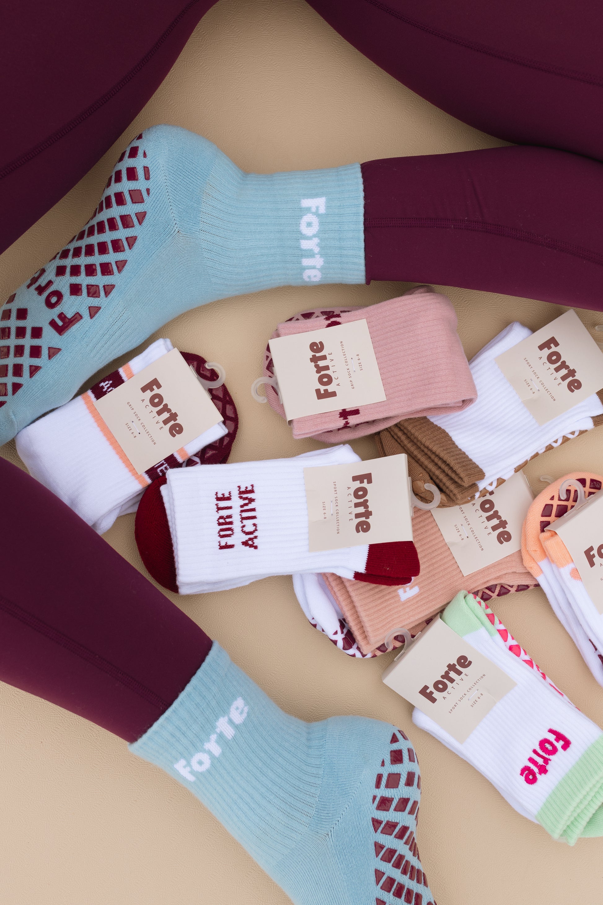 The serene sky blue hue evokes balance and clarity, while the deep berry-toned grip detail adds a subtle pop of sophistication. Designed to empower your movement and elevate your studio style, the Sky Blue Sock is your go to essential for every mindful session.
