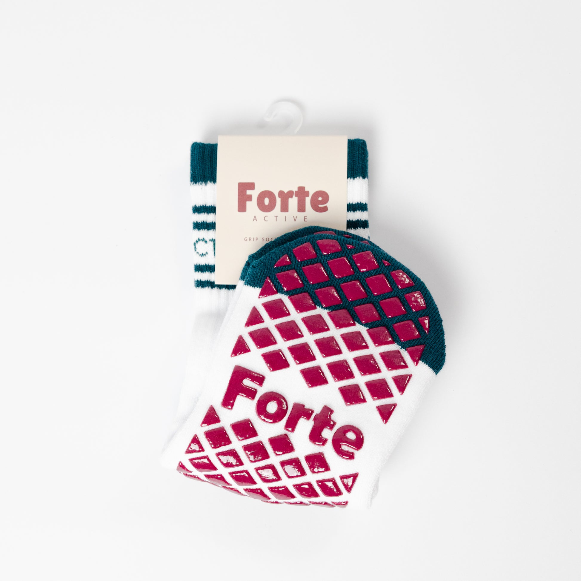 Whether you’re mastering reformer sequences or styling them beyond the studio, the Teal Stripe Sock offers a calm confidence that moves with you!